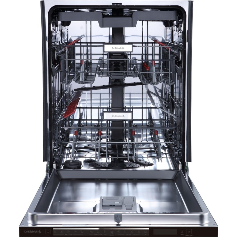 Електровживання повністю вбудованої посудомийної машини De Dietrich DCJ632DQB на 16 комплектів відповідає найвищим стандартам: клас енергоефективності C, і мінімальний рівень шуму ― всього 42 дБ (А).