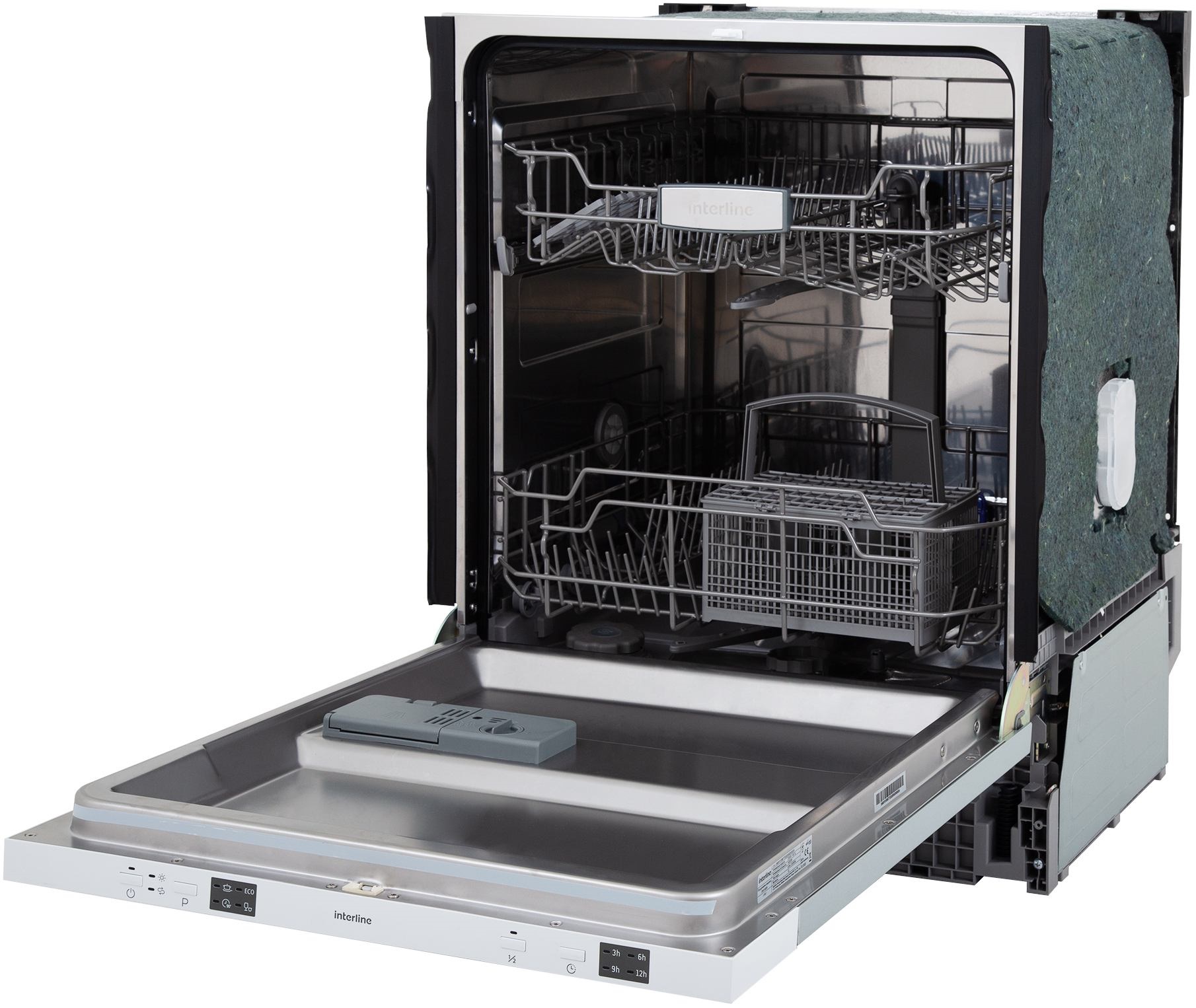 Посудомийна машина Interline DWI 600 P1 здатна вимити до 12 комплектів посуду за раз. Ширина приладу 60 см. Два кошики для завантаження посуду (переносна корзина для столових приборів). Нижній кошик посудомийної машини має складуємі елементи, завдяки чому, ви завжди знайдете місце для громіздких каструль. Внутрішня камера (бокова, верхня стінка) виконана з кислотостійкої нержавіючої сталі і покрита антибактеріальним покриттям. Трирівнева система фільтрації захищає зливний насос від залишків їжі чим збільшує термін експлуатації посудомийної машини. Нижній розбризкувач S-FORM. Нова форма у вигляді букви «S» допомагає потокам води покривати всю поверхню камери.