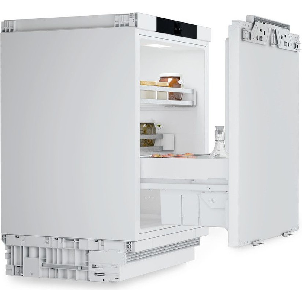 Декоративні дверцята кухонного фасаду жорстко кріпляться безпосередньо до дверцят холодильника за допомогою шарнірів. Ця монолітна конструкція забезпечує надійність в експлуатації, максимальний кут відкривання дверей холодильника і щільне прилягання без проміжків між двома дверцятами.