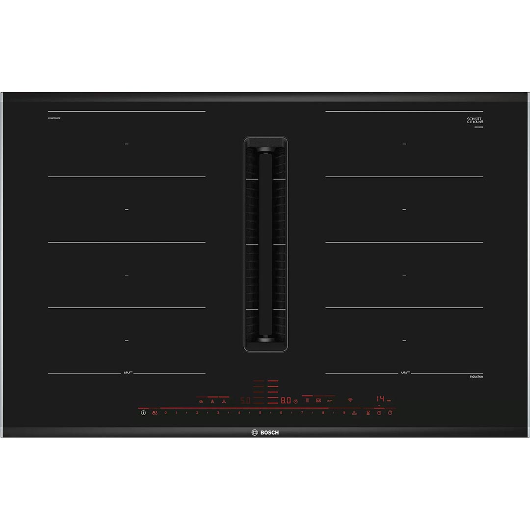 Serie | 8 Індукційна варильна панель з інтегрованою витяжкою Bosch PXX875D67E: поєднує в собі краще від індукції з передовими технологіями вентиляції для досягнення ідеальних результатів.