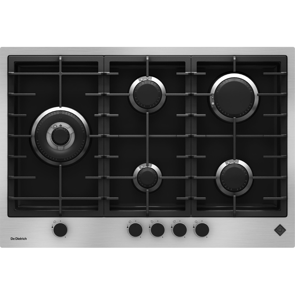 Газова варильна поверхня De Dietrich DPE4729XF з колекції Stainless Steel з п'ятьма конфорками стане функціональною прикрасою на Вашій кухні. Елементи управління — поворотні перемикачі. Матеріал поверхні — нержавіюча сталь, решіток — чавун. Є захист від перегріву, газ-контроль і електрозапалювання. Може працювати на різних типах газу.