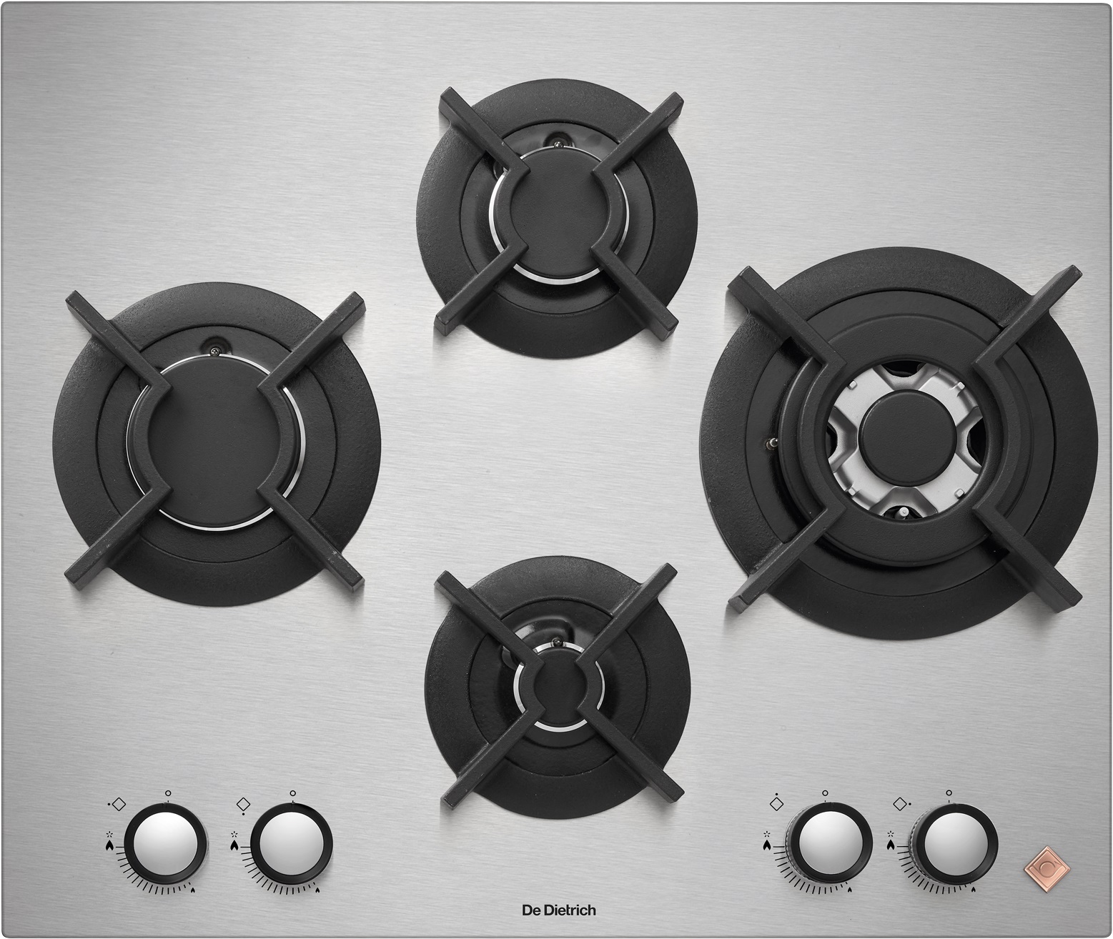 Новий дизайн для максимального комфорту і зручності при використанні. Великий і маленький посуд легко розмістити на поверхні з 4 пальниками, розташованими в формі ромба. Ідеально плоска, відполірована поверхня виготовлена з нержавіючої сталі і може бути встановлена на одному рівні зі стільницею.