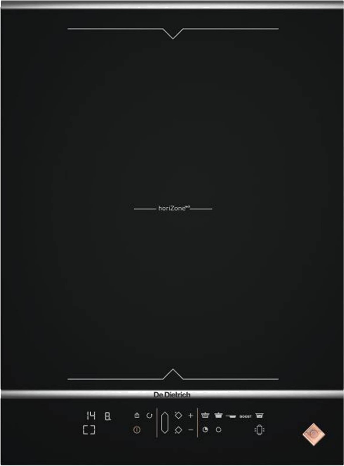 Інноваційний дизайн вільної зони приготування HoriZone Play, який пропонує ця суцільна індукційна поверхня De Dietrich DPI7468XS без поділу на зони, дозволяє використовувати її з такими аксесуарами, як гриль або планча. Це дозволяє Вам комбінувати різні способи приготування і смаки на 38-сантиметровій зоні для приготування.