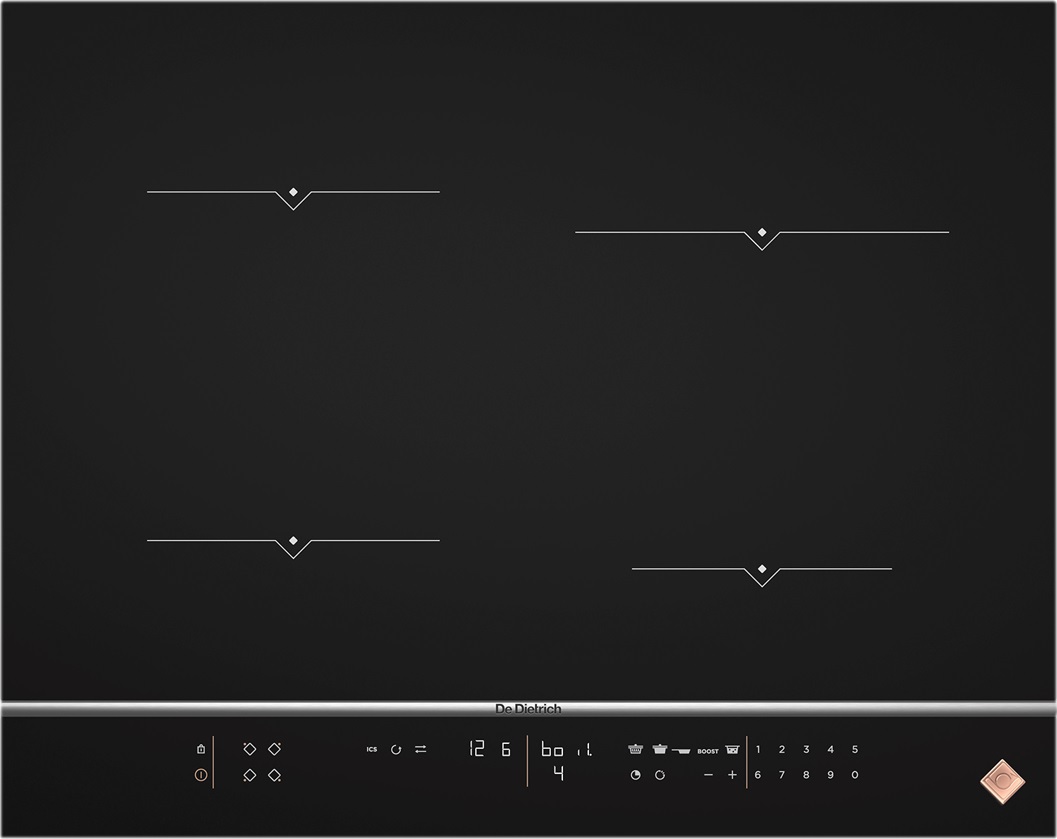 Індукційна технологія De Dietrich досягає рекордних рівнів потужності від 2400, 2800 і до 3700 Вт на стандартних зонах. Ці зони мають різні розміри для приготування в круглому і овальному посуді, незалежно від його розмірів, з неперевершеною гнучкістю.