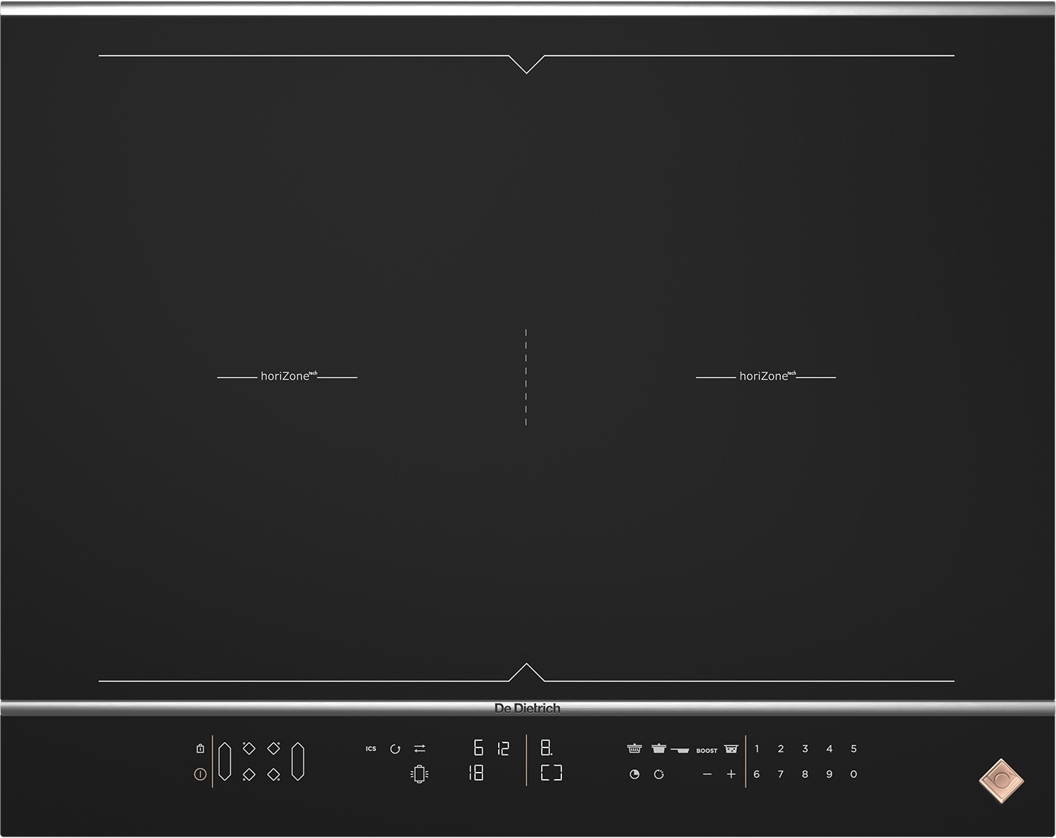 Ця індукційна варильна поверхня De Dietrich має високу ступінь пристосованості і гнучкості в питаннях налаштувань потужності. Нова цифрова панель управління дозволяє налаштувати потужність від 1 до 20 з граничною точністю і легкістю, а обране налаштування відображається з білими світлодіодами.