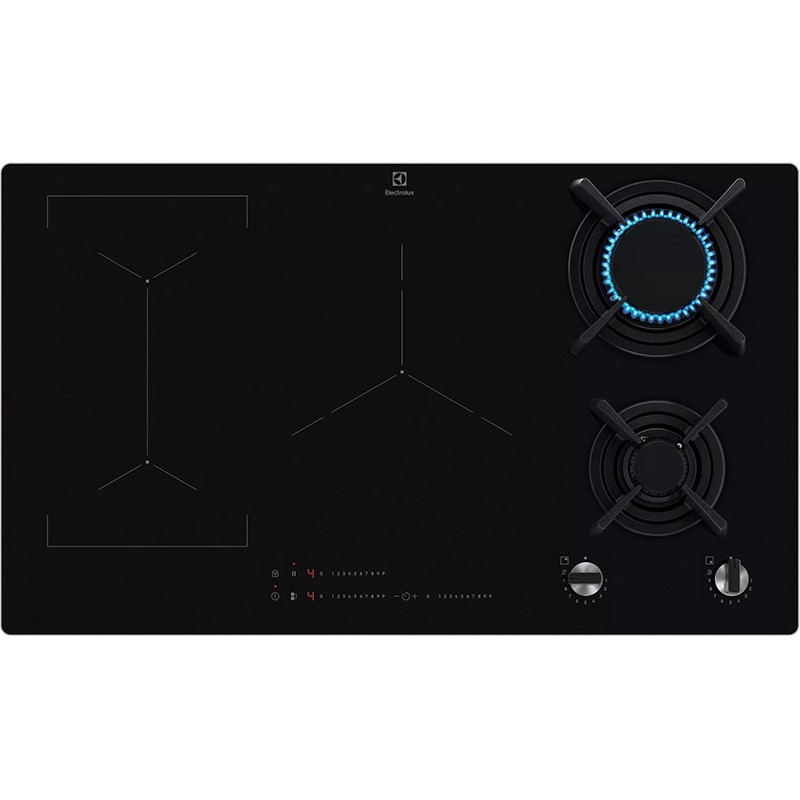 Комбінована варильна панель Electrolux KDI951723K з 2 газовими конфорками та 3 індукційними зонами з функцією "Bridge" та тактильним керуванням.
