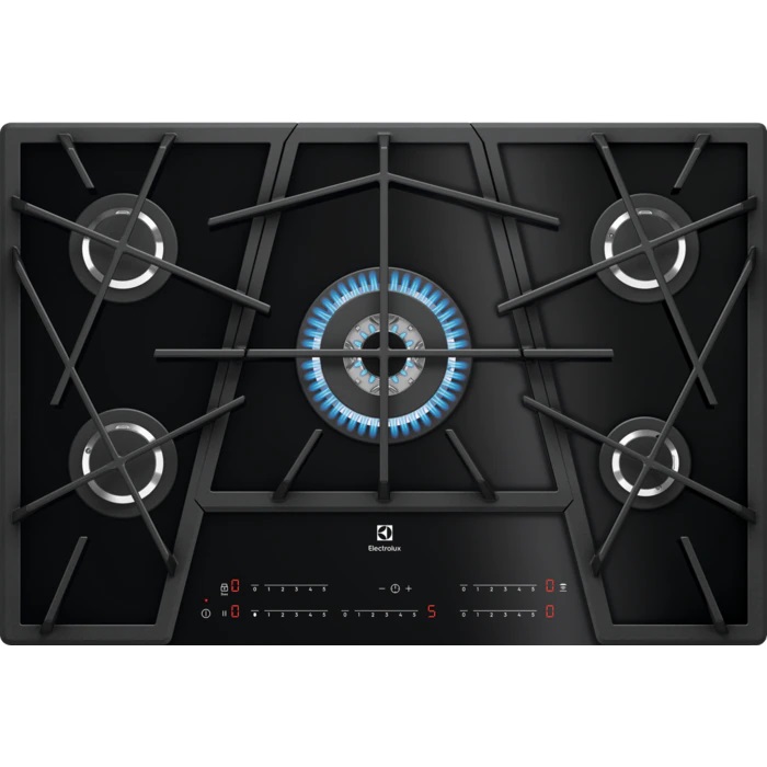Елегантна газова панель Electrolux KGV7539IK «Газ на склі» має унікальний широким функціонал та чудовим дизайном. П'ять конфорок дозволяють готувати відразу кілька страв, а незвичайна форма чавунних решіток вигідно відрізняє дану модель. Центральна надпотужна WOK-конфорка з декількома розсікачами полум'я відмінно підійде для приготування страв азіатської кухні в посуді типу WOK.