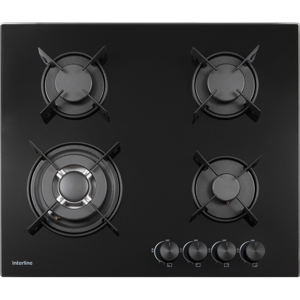 Вбудована газова варильна поверхня Interline SGV 584 MCH BA виконана повністю у чорному привабливому дизайні, включаючи поворотні перемикачі потужності. Вона також дає можливість одночасного приготування різних страв, завдяки чотирьом конфоркам. Дві передні конфорки високої потужності та малої потужності, задні мають середню потужність нагріву. Це дає вам можливість вибору конфорки для тієї чи іншої страви та діаметру посуду. Конфорки накриті міцними чавунними решітками, які витримують велику вагу та стійкі до високих температур. Чорна поверхня варильної панелі із загартованого скла стане сучасною окрасою вашої кухні та порадує простотою у догляді.