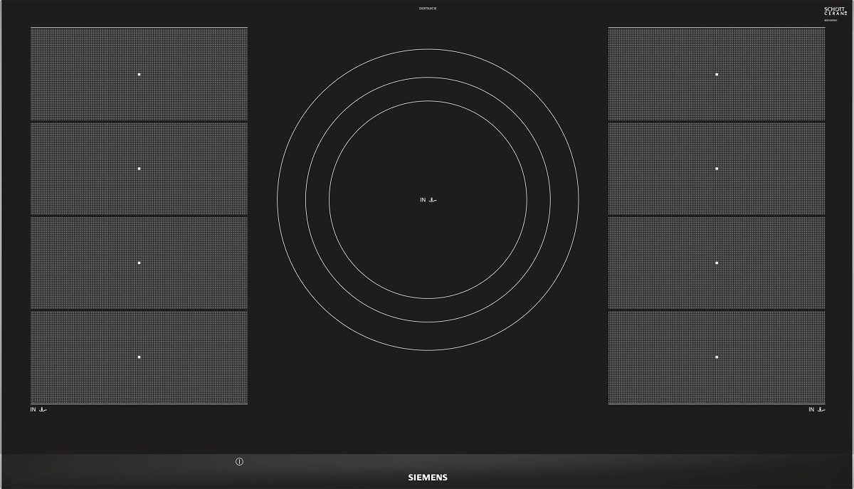 iQ700 Індукційна варильна панель Siemens EX975LVC1E шириною 90 см комплектується трехконтурною конфоркою, яка забезпечує включення більшої чи меншої зони нагріву в залежності від діаметруа посуду. Завдяки технології FlexZone дві сусідні конфорки можна об'єднати в одну велику зону, яка рівномірно нагріває як невеликі ковши і сковороди, так і великогабаритні каструлі незалежно від їх розташування. Функція powerBoost зменшує час приготування.