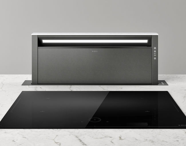 Витяжка Elica GETUP NAKED/A/90 ненав'язливо вписується в дизайн будь-якого типу кухонь, залишаючи максимум свободи вибору стилю. Коли витяжка не потрібна вона повністю зникає всередину меблів. Розміри та позиція витяжного блоку, можливість дистанційного керування — гарантують поєднання з будь-яким типом меблів, заощаджуючи простір без шкоди для продуктивності найвищого рівня. Для обробки верхньої частини цієї витяжки може бути використаний той же матеріал, з якого виготовлений верх кухні, що гарантує максимальну інтеграцію в інтер'єр.