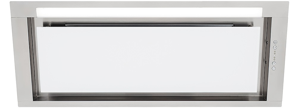 Вибір потужності відображається за допомогою світлової індикації: всього доступно три швидкості всмоктування плюс інтенсивний режим. Поглинання випарів по периметру панелі забезпечує більш якісне їх видалення, а також знижує рівень шуму під час роботи витяжки.