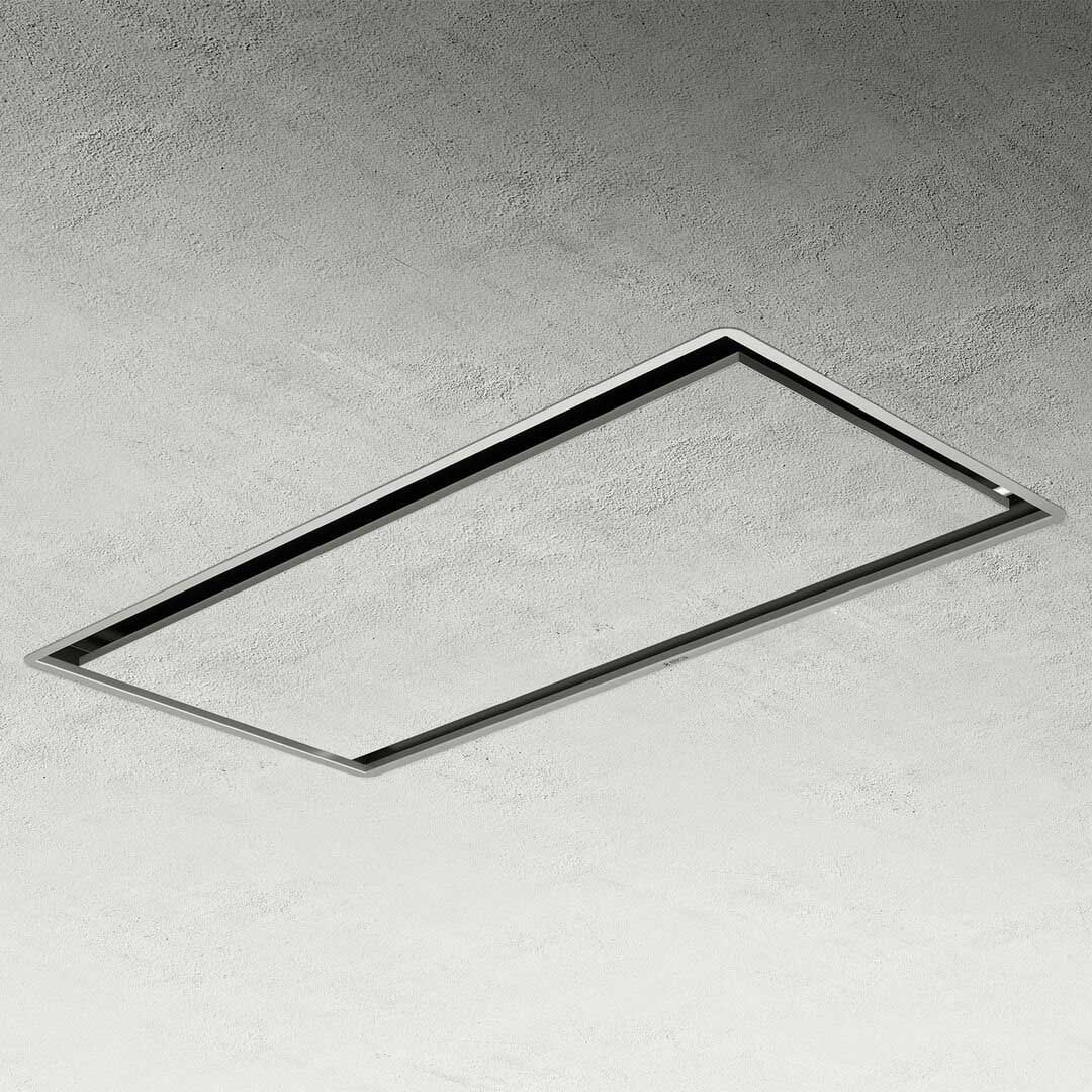 Дизайн. Вбудована витяжка в стелю. Її фасад можна пофарбувати. Завдяки цьому ви легко впишете прилад в будь-яку кухню. При виробництві застосовуються тільки якісні матеріали та комплектуючі. Робоча панель встановлюється нарівні зі стелею і створює відчуття вільного простору. Модель не ускладнює інтер'єр і підходить навіть для невеликих кімнат. Площа всмоктування значна, тому виріб швидко очищає повітря від жиру, кіптяви та неприємних запахів.