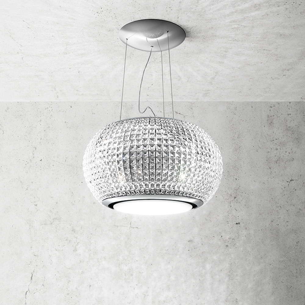 Elica INTERSTELLAR IX/F/65 ― стильний дизайн цієї витяжки підкреслить інтер'єр сучасної кухні. Революційна дизайнерська модель витяжки-люстри INTERSTELLAR представлена в поєднанні дзеркальної полірованої сталі і 1062 кристалів з прозорого скла. Ефективно очищає повітря зберігаючи чистоту кухні від жирових відкладень на меблях і стінах. Максимальна продуктивність витяжки 800 м³/год на останній швидкості. Робоча поверхня висвітлюється світлодіодною смугою потужністю 7Вт і двома світлодіодними лампами потужністю по 20Вт, термін їх служби в десять разів більше ніж у звичайних ламп.