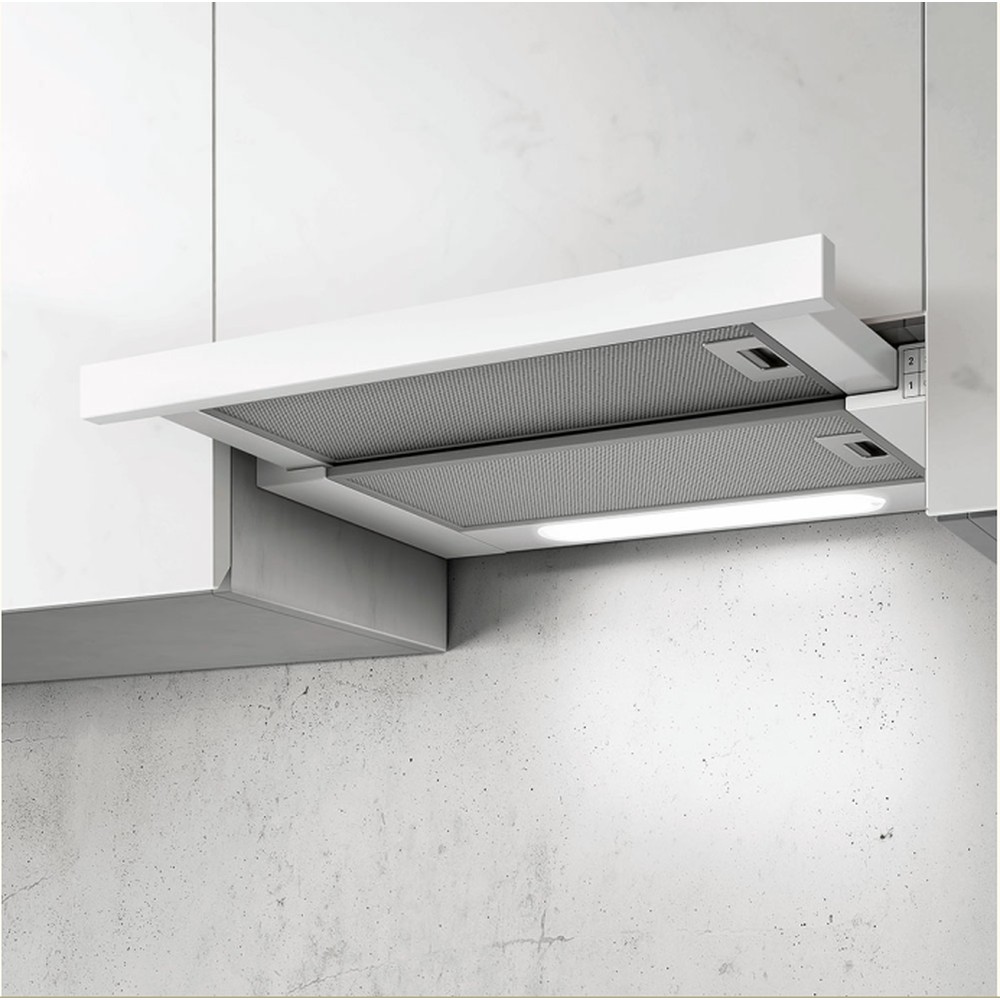 Стильна телескопічна витяжка Elica TT14 LUX WH/A/60 має високу продуктивність і може працювати в режимах відведення та рециркуляції повітря. Залежно від ступеня випарів доступни три швидкості швидкості всмоктування, вибір яких здійснюється за допомогою прихованої кнопкової панелі управління. Завдяки пристрою телескопічного корпусу приладу витяжка є досить компактною і легко впишеться практично в будь-який інтер'єр, так як не приваблює на себе зайвої уваги. Також розширена зона всмоктування дозволяє ефективніше вловлювати випаровування при готуванні, а світлодіодне освітлення забезпечує додатковий комфорт за робочою зоною.