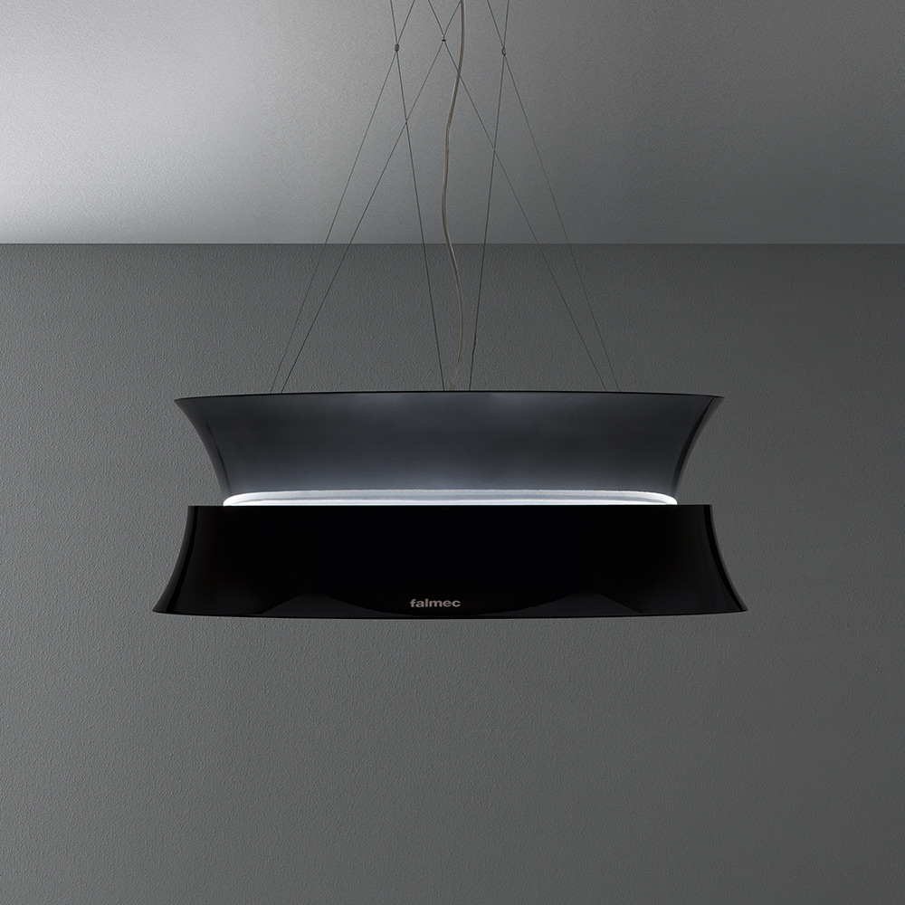 Витяжка Falmec DAMA GUNMETAL (CDCN60.E0P7#ZZZD461F) виробляється з нержавіючої сталі і представлена в чорному кольорі. У площині аспірації розташовується панель з прозорого загартованого скла. Декоративне регульоване підсвічування створює атмосферу затишку і спокою.