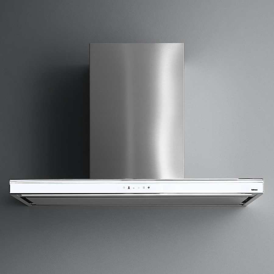 Настінна витяжка Falmec LUMINA NRS 90 White (CLMN90.00P2#BCOI490F) проводиться з високосортної нержавіючої сталі марки AISI 304 і декорована рамкою з загартованого білого скла. Неонове біле просторове освітлення створює в приміщенні святкову атмосферу.