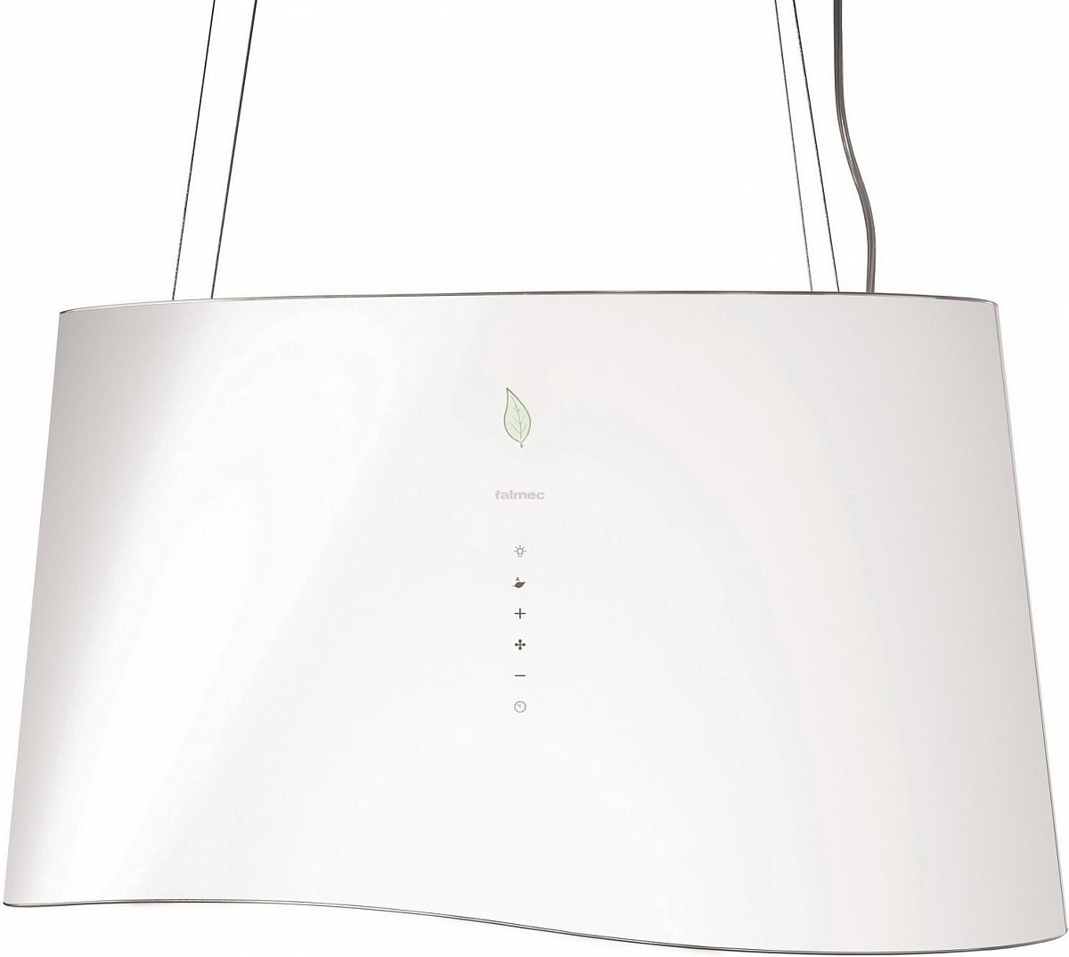 Острівна витяжка Falmec MARE 66 E.ion White isola (CENI66.E0P6#ZZZF441F) виготовлена із загартованого білого скла. Модель оснащена сенсорним управлінням. Глянцевий блиск поверхні і елегантна лінія нижньої кромки гармонійно поєднуються і прикрашають будь-яку сучасну кухню в стилі хай-тек.