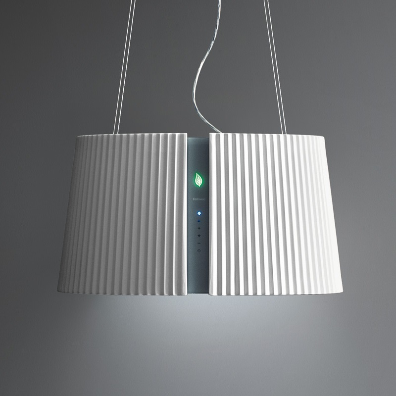 Витяжка Falmec MARILYN 66 E.ion White isola (CEMI66.E0P6#ZZZX441F) представлена в білому кольорі. Корпус моделі виконаний з міцної кераміки. На передній панелі розташовано сенсорне управління і розміщений індикатор стану аналізатора газового середовища, стилізований під зелений лист.