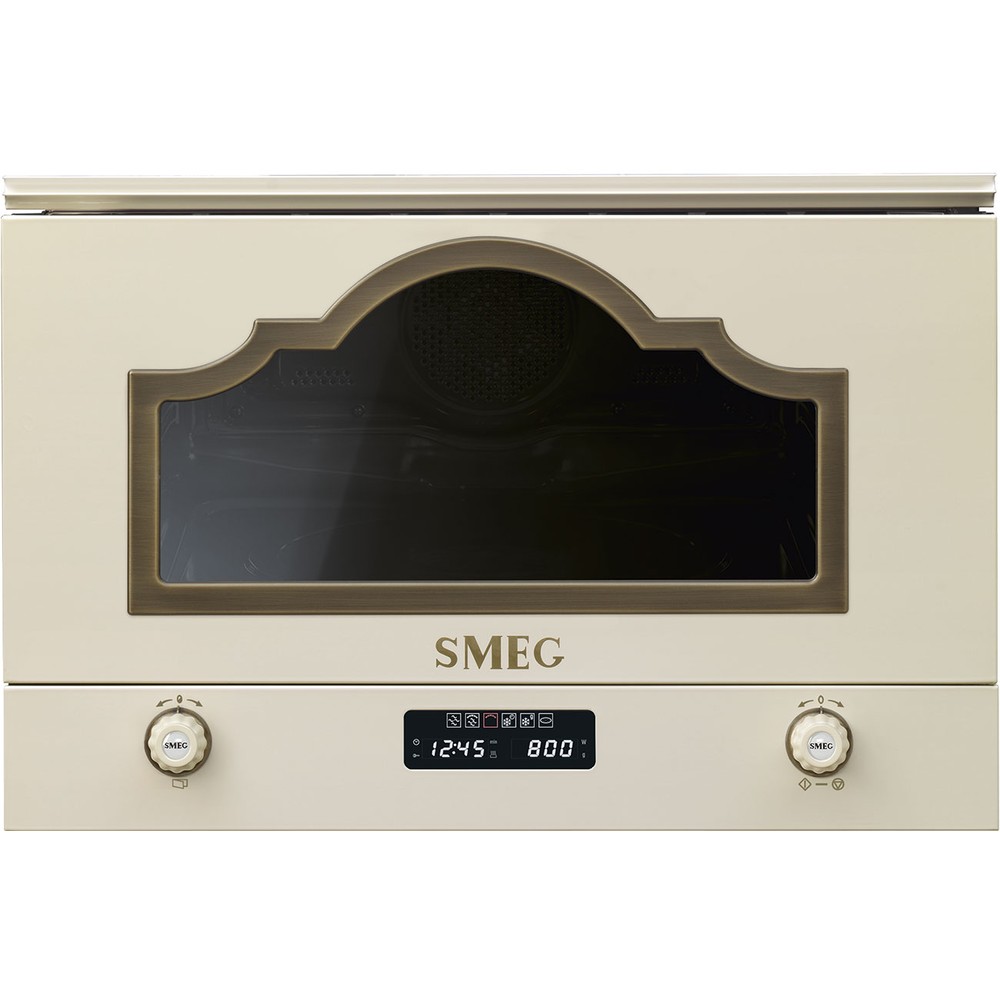 Вбудована мікрохвильова піч Smeg MP722PO — стильне та компактне рішення не тільки для швидкого розігріву обідів та вечерь, але й для приготування повноцінних страв та делікатного розморожування напівфабрикатів. У 22-літровій камері Plus, позбавленої поворотного столу, достатньо місця і для пишного пирога, і для цілої курки.