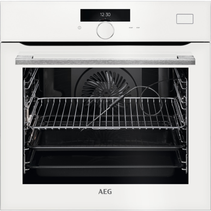 Внутри духовой шкаф AEG BSR882320W оснащен съемными хромированными направляющими EasyEntry, которые упрощают установку противней, делая ее более удобной и безопасной. Телескопические направляющие можно переставлять на нужный уровень. Они обеспечиваю безопасное извлечение тяжелых противней, например, когда вам нужно проверить готовность блюда или добавить ингредиент. Для идеального приготовления мяса нужной прожарки служит термощуп.