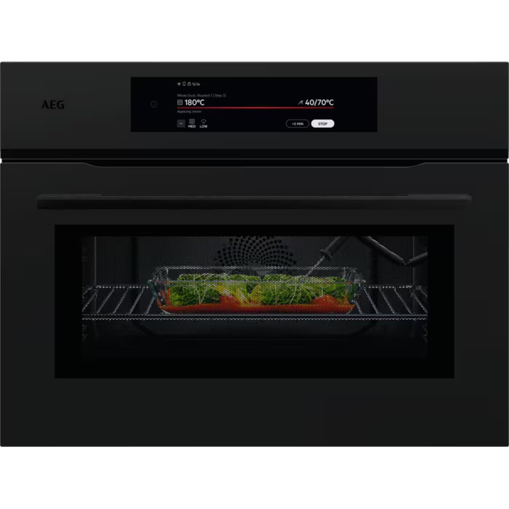 Компактна духова шафа з функцією мікрохвиль AEG NKK9N821T у матовому чорному кольорі