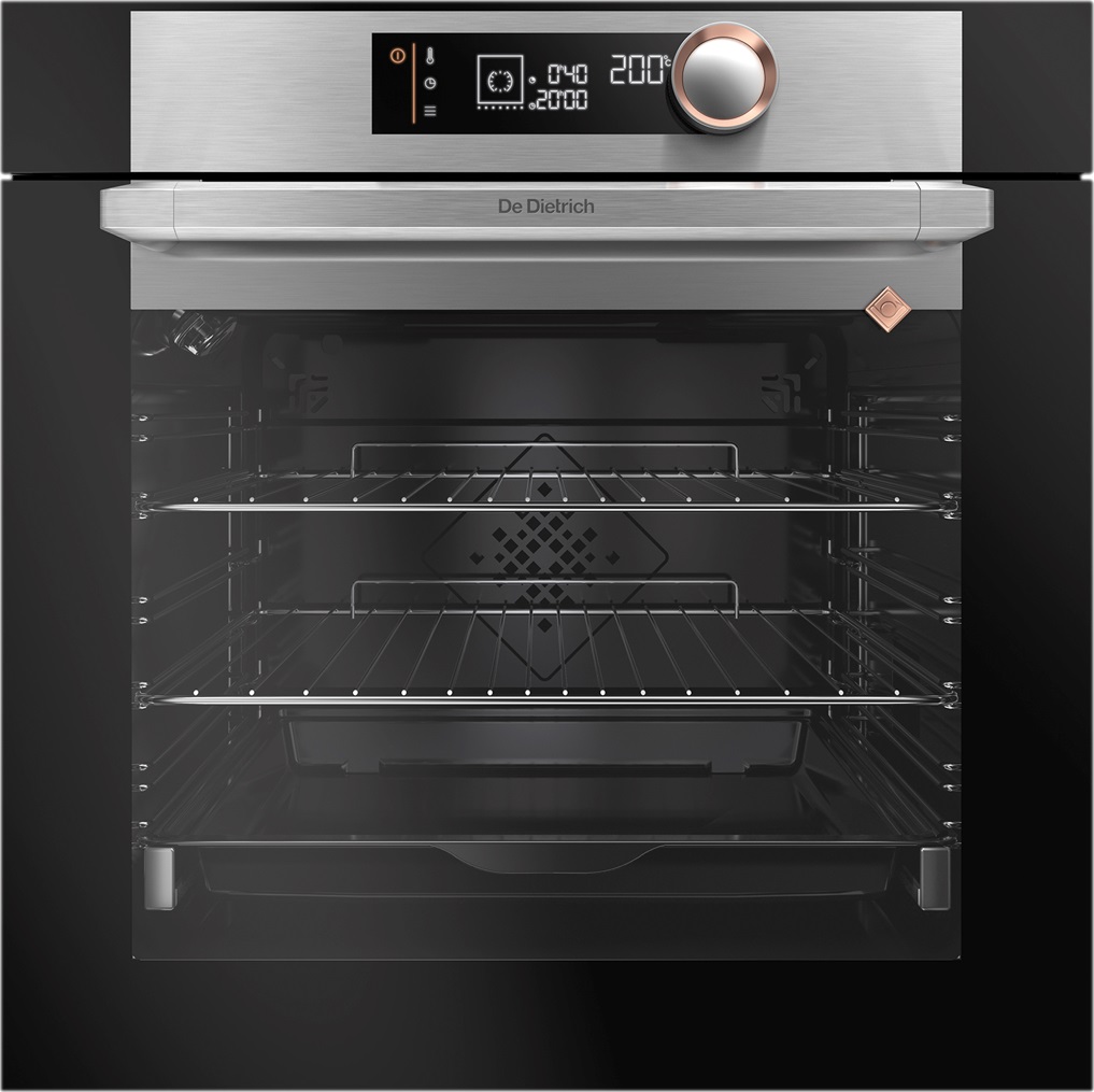 Вбудована духова шафа De Dietrich DOC7360X з колекції Platinum з каталітичним очищенням постійно очищається і має спеціальне каталітичне емалеве покриття на стінках, яке дозволяє видалити плями і жирні бризки під час процесу приготування.