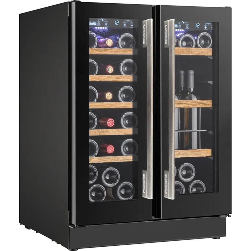 Двокамерна винна шафа FWC 828 Black з двома скляними дверцятами із захисним ультрафіолетовим шаром, які відкриваються навстіж. Завдяки своїм компактним розмірам та стильному дизайну, вона ідеально впишеться в інтер'єр будь-якої сучасної кухні. Дві температурні зони дозволять зберігати різні види вина за оптимальних умов. Винна шафа об'ємом 116 літрів може підтримувати температуру від +5°C до +20°C з мінімальним відхиленням під керуванням високоточних електронних датчиків. Інтуїтивне сенсорне керування з дисплеєм дозволить швидко та легко вибрати режим роботи пристрою. Завдяки системі вентиляції підтримується необхідна свіжість повітря, що сприяє повільному дозріванню вина. Винна шафа Fabiano FWC 828 Black містить 38 стандартних пляшок.