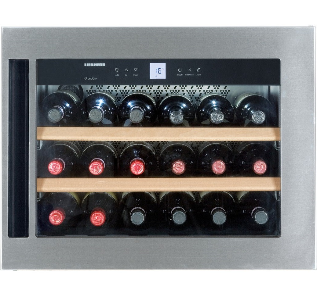 Винна шафа розроблена для вбудовування на рівні очей і підійде для невеликої колекції вина до 18 пляшок. Модель дозволяє забезпечити ідеальні умови для зберігання шляхетного напою. Прозора тонована дверка, дві висувні полички з натурального дерева, безпечне для вина світлодіодне підсвічування і цифровий індикатор температурного режиму дозволять моделі зайняти гідне місце в інтер'єрі будь-якого стилю.