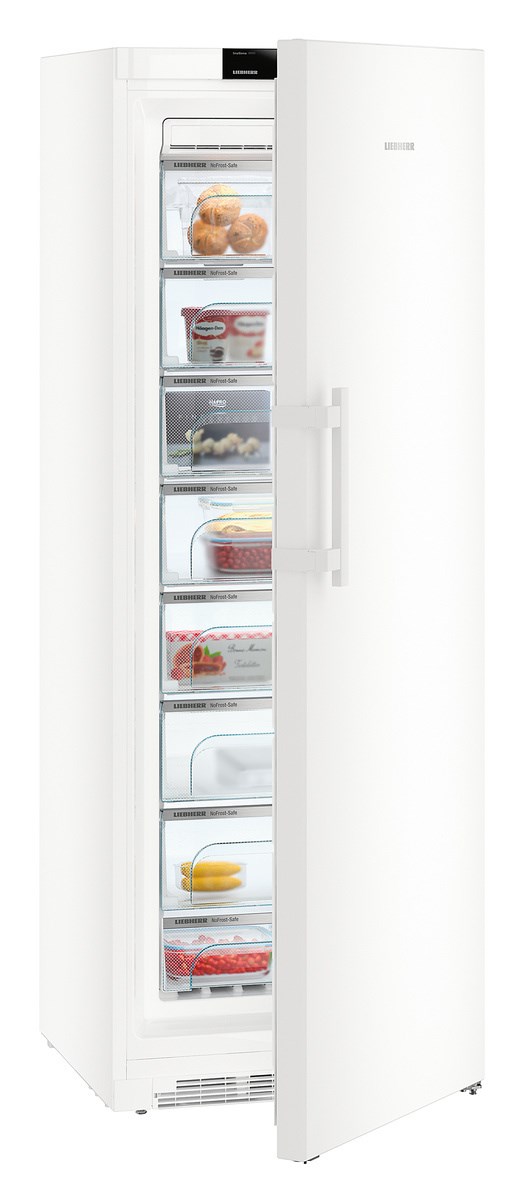 Для максимальної зручності витягування продуктів навіть при повному завантаженні в морозильних камерах серії BluPerformance використовуються висувні контейнери на роликах. Для додаткової зручності при висовуванні або завантаженні продуктів на зберігання, особливо у високих пристроях, верхній висувний контейнер злегка відкидається вниз. Нижній висувний контейнер, завдяки своєму розташуванню та розміру, призначений для зберігання морозива, зелені та інших продуктів у маленькому пакуванні.