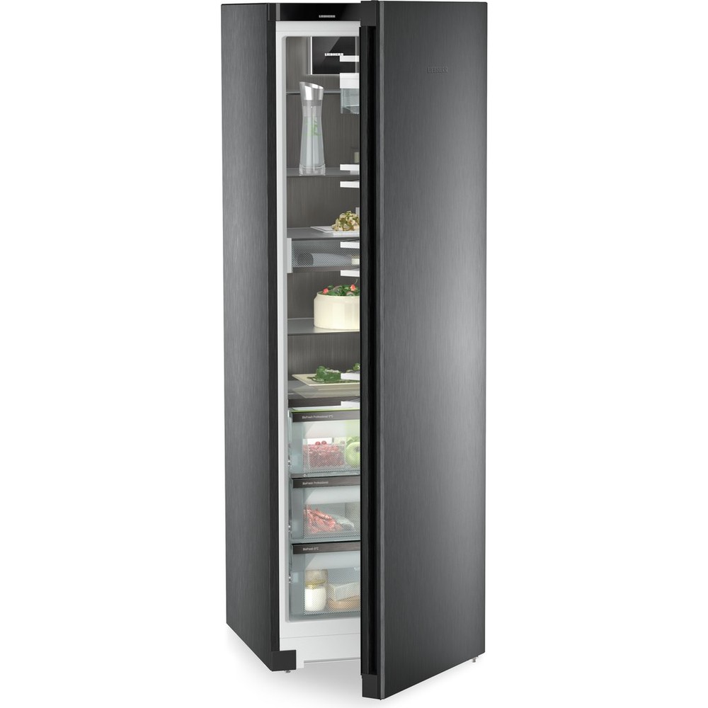 Внутрішній дизайн BlackSteel, що підкреслює красу кухні в темних відтінках. Задню стінку й внутрішню поверхню дверцят приладу виготовлено з ефектної чорної нержавіючої сталі. А завдяки спеціальному захисному покриттю на них не залишається слідів від пальців. Обрамлення BlackSteel доповнює вишукані темні тони приладу. Холодильник Liebherr із внутрішнім дизайном BlackSteel ідеально вписується в інтер’єр сучасних кухонь у темних відтінках і вирізняється елегантністю.