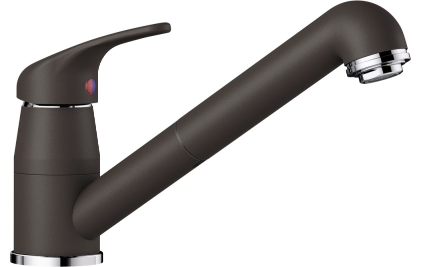Одноважільний кухонний змішувач Blanco DARAS-S (517740) кава з висувним виливом. Дана модель чудово поєднується з невеликими мийками, а функціональний вилив підвищує зручність і комфорт в роботі на кухні. Шланг висувного виливу має нейлонову оплітку. Для запобігання протікання в конструкції змішувача передбачений зворотний клапан. Плавне і точне керування напором води забезпечує високоякісний керамічний картридж Blanco. Для захисту змішувача від засмічень і пошкодження картриджа, в комплекті поставляється спеціальний фільтр механічних забруднень. Він встановлюється між вентилем підведення води, забезпечуючи довговічну й стабільну роботу приладу. Кольорові виконання змішувача Blanco DARAS-S дозволяють йому прекрасно гармоніювати з мийками Blanco з матеріалу SILGRANIT®.