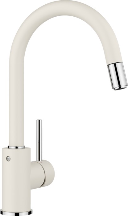 Одноважільний змішувач Blanco MIDA-S (526968) ніжний білий — вишуканий та лаконічний дизайн доповнений елегантним регулятором для компактних мийок. Модель має висувний вилив для комфортного наповнення ємностей або ополіскування посуду. Також вилив може повертатися на 360°, що дозволяє швидко очистити крило або надійно скласти великий посуд у мийці. Стабілізуюча пластина створює додаткову стійкість змішувача і захищає від утворення підтікань.