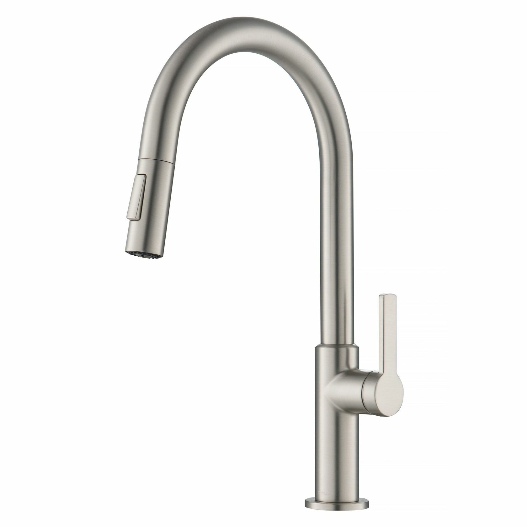 Обтічний і елегантний Oletto ™ Pull-Down Faucet відрізняється сучасним дизайном з універсальної привабливістю. Кожна деталь дизайну ретельно продумана, щоб створити ідеально збалансований змішувач, який прикрасить будь-яку кухню або приміщення пральні. Високий дугоподібний вилив забезпечує максимальний простір для габаритних предметів, таких як великий посуд свисокі каструлі. Ергономічна ручка зі зручною рукояткою, розроблена для простоти використання, повертається на 90 ° вперед, забезпечуючи плавність ходу і зручність установки в приміщеннях з обмеженим вільним простором. Висувна лійка з поворотним адаптером забезпечує максимальну маневреність, плавне втягування і надійне стикування, що дозволяє згинатися, повертатися і дотягуватися до всього навколо раковини. Надійна конструкція не містить свинцю, зроблена з цільноі латуні і містить найсучасніші компоненти, в тому числі керамічний картридж, розрахований на термін служби в два рази довший, ніж промисловий стандарт, для забезпечення безпроблемного використання протягом усього життя. Установка проста і зручна завдяки гнучким попередньо приєднаним шлангам, противазі QuickWeight,#nbsp; шлангу розпилювача QuickConnect, що легко встановлюється і замикається для герметичного з'єднання.