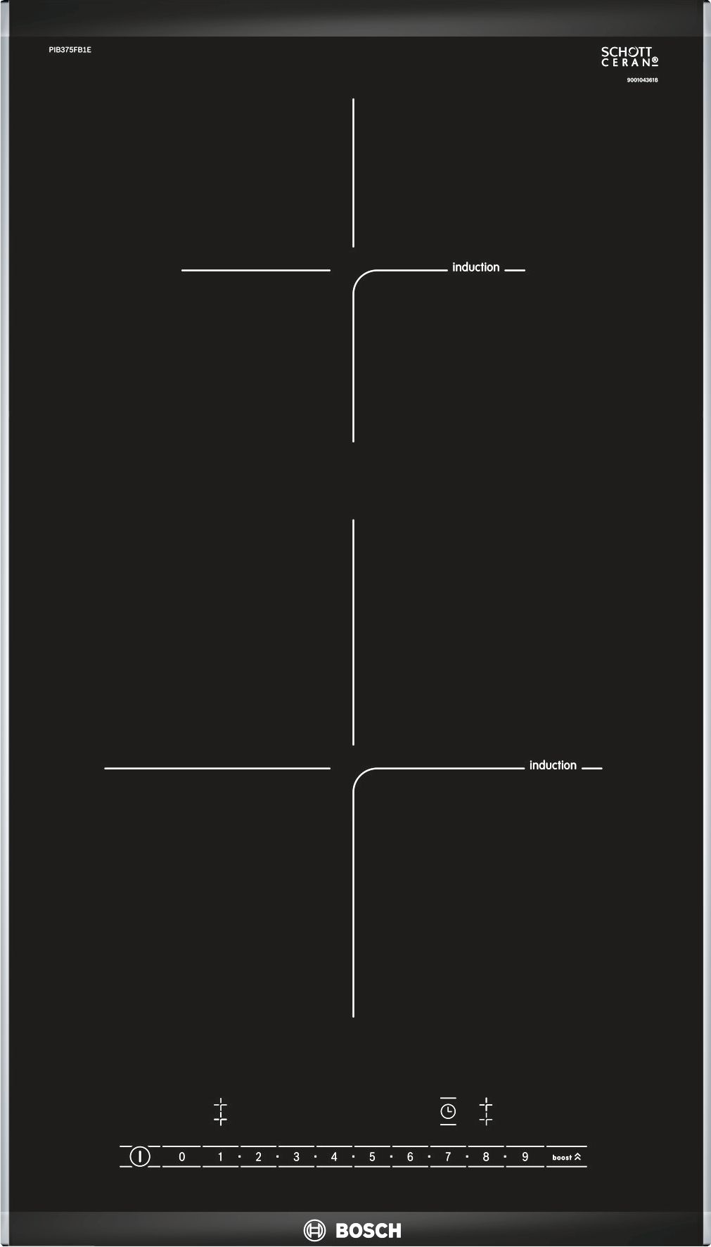 Serie | 6 Индукционная варочная панель Domino Bosch PIB375FB1E шириной 30 см: быстрый нагрев и простота в обслуживании.