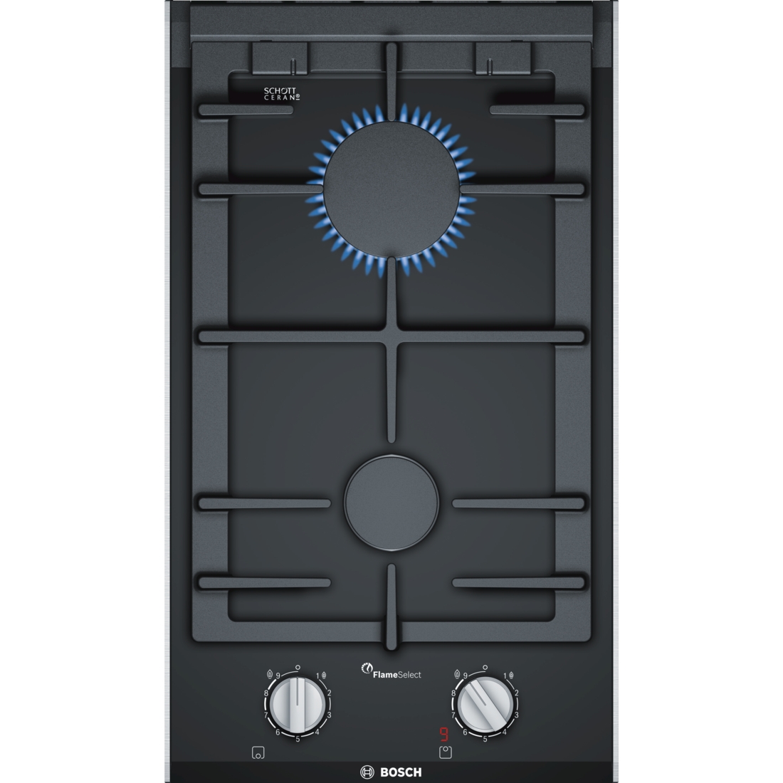 Serie | 8 Газовая варочная панель Bosch PRB3A6B70 Domino шириной 30 см из стеклокерамики чёрного цвета с технологией FlameSelect: достижение совершенных результатов благодаря 9 ступеням регулировки пламени.