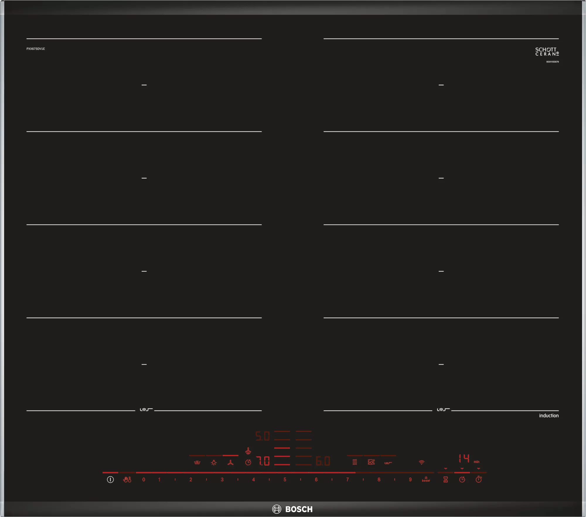 Serie | 8 Индукционная варочная панель Bosch PXX675DV1E с функцией PerfectFry: достижение великолепных результатов прожарки благодаря автоматическому контролю температуры.