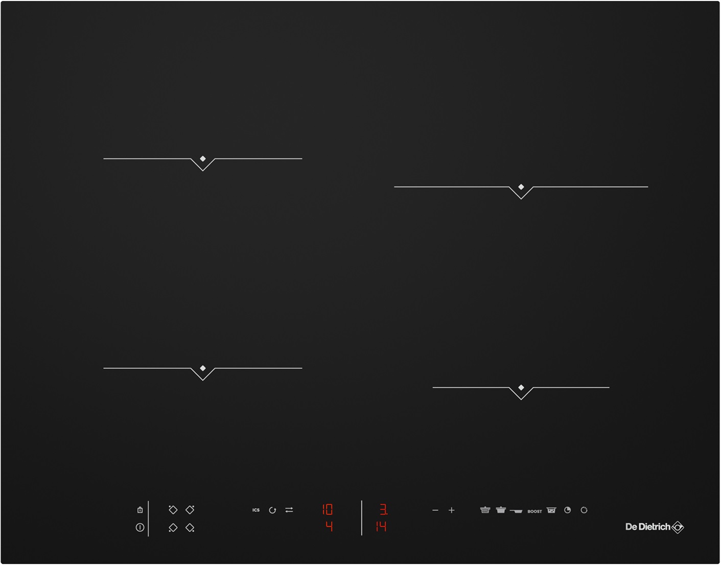 Модель De Dietrich DPI7650BU — это индукционная варочная панель из коллекции Absolute Black с четырьмя независимыми зонами нагрева. Модель имеет 15 уровней мощности, а также функции «Бустер», «Кипение», «Истекшее время» и «Перенос настроек». Оснащена индикатором остаточного тепла и сенсором наличия посуды. Каждая конфорка имеет таймер. Управление сенсорное. Предусмотрена возможность центральной блокировки. Особенностью данной варочной поверхности является её способность адаптировать общую мощность своих зон к местным условиям электрической сети (7400 Вт при 32A, 4600 Вт при 20A, 3600 Вт при 16A и 3000 Вт при 13A).