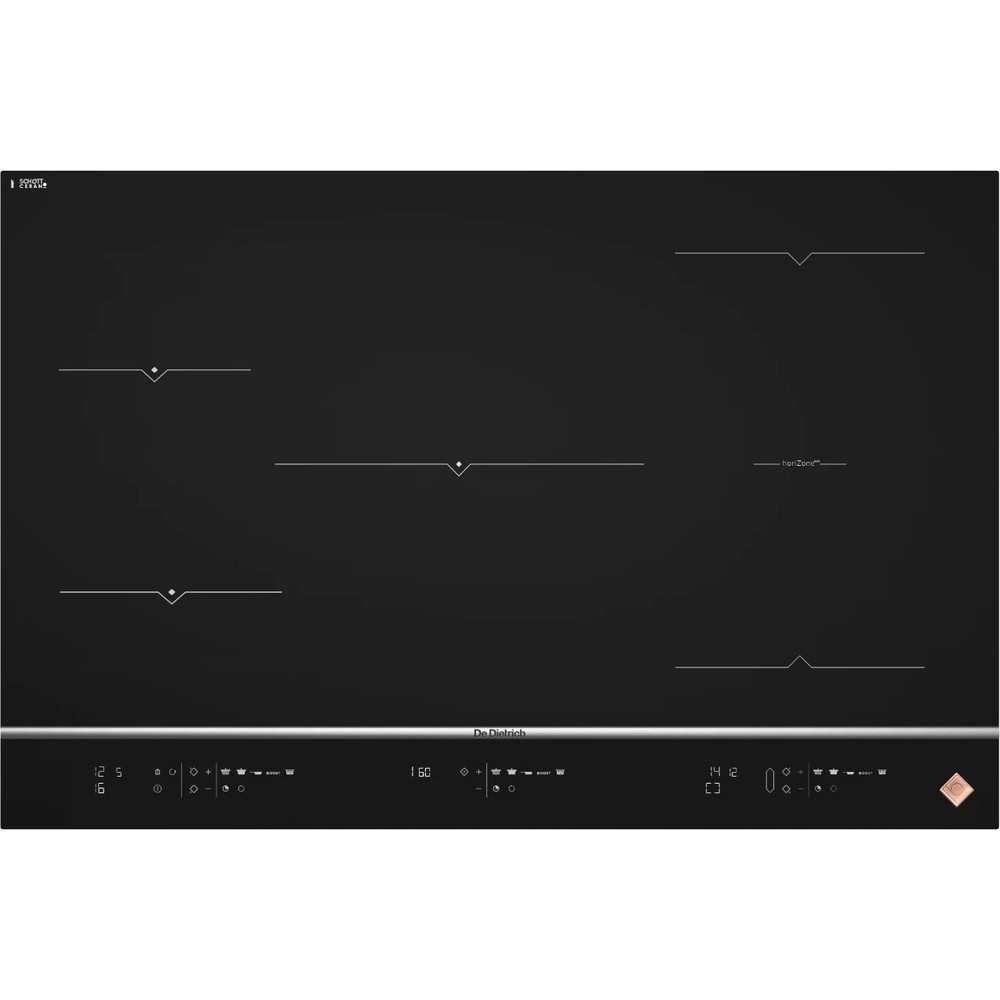 Варочная поверхность De Dietrich DPI7878X из коллекции Platinum шириной 80 см с пятью независимыми индукционными конфорками, две из которых могут объединяться в свободную зону horiZone. Выполнена из стеклокерамики чёрного цвета. Имеет 20 уровней мощности и 10 функций безопасности. С помощью этой варочной поверхности Вы раскроете свои кулинарные таланты. Пять независимых зон приготовления, одна свободная зона и зона 28 см обеспечивают пользователю максимальную гибкость в приготовлении пищи.