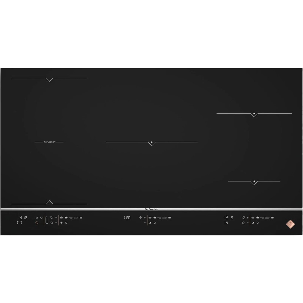 Варочная поверхность De Dietrich DPI7965X из коллекции Platinum шириной 90 см с пятью независимыми индукционными конфорками, две из которых могут объединяться в свободную зону horiZone. Выполнена из стеклокерамики чёрного цвета. Имеет 20 уровней мощности и 10 функций безопасности. С помощью этой варочной поверхности Вы раскроете свои кулинарные таланты. Пять независимых зон приготовления, одна свободная зона и зона 28 см обеспечивают пользователю максимальную гибкость в приготовлении пищи.