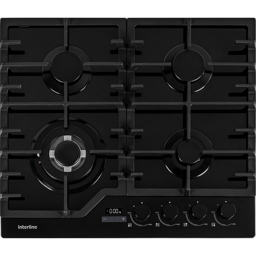 Встраиваемая газовая варочная поверхность Interline HGG 965 MGT BA выполнена полностью в чёрном привлекательном дизайне, включая поворотные переключатели мощности. Она также представляет собой возможность одновременного приготовления различных блюд, благодаря четырем конфоркам. Две передние конфорки — высокой мощности и малой мощности, задние имеют среднюю мощность нагрева. Это дает вам возможность выбора конфорки для того или иного блюда и диаметра посуды. Конфорки накрыты прочными чугунными решетками, которые выдерживают большой вес и устойчивы к высоким температурам. Чёрная поверхность варочной панели из закалённого стекла станет современным украшением вашей кухни и порадует простотой в уходе.