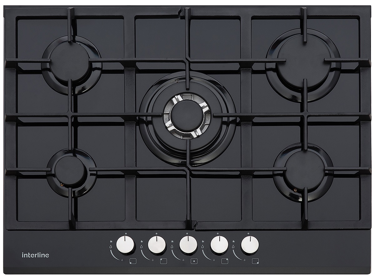 Варочная поверхность Interline HGG 974 FGT BA имеет четыре традиционно расположенных газовых конфорки, специальная форма которых обеспечивает максимальный нагрев. Это приводит к существенной экономии природного газа. Поворотные переключатели, управляющие конфорками, имеют боковое расположение.