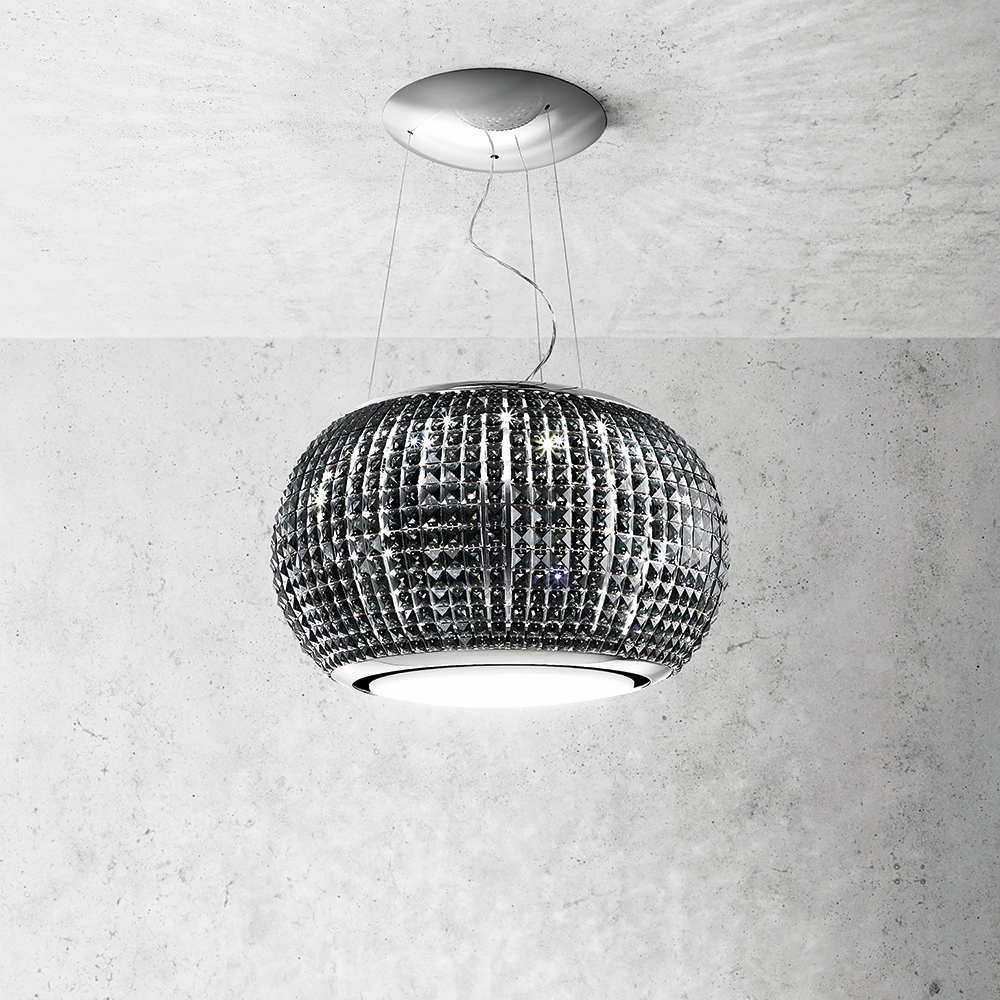 Elica INTERSTELLAR BL/F/65 ― стильный дизайн этой вытяжки подчеркнет интерьер современной кухни. Революционная дизайнерская модель вытяжки-люстры INTERSTELLAR представлена в сочетании зеркальной полированной стали и 1062 кристаллов из прозрачного чёрного стекла. Эффективно очищает воздух сохраняя чистоту кухни от жировых отложений на мебели и стенах. Максимальная производительность вытяжки 800 м³/ч на последней скорости. Рабочая поверхность освещается светодиодной полосой мощностью 7 Вт и двумя светодиодными лампами мощностью по 20 Вт, срок их службы в десять раз больше чем у обычных ламп.