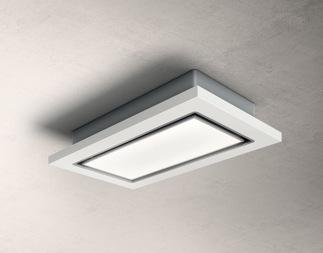 Дизайн. Встраиваемая в потолок вытяжка из белого лакированного дерева. Модель разработана таким образом, чтобы лаконично вписаться в современный интерьер. Добавление одной или нескольких дополнительных полок дает возможность преобразоваться внешний вид изделия.