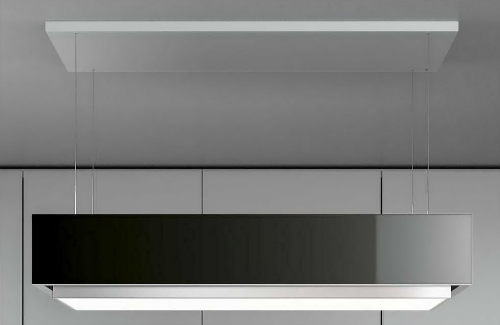 Вытяжка Falmec LEVANTE GUNMETAL (CLVI20.E0P7#ZZZN461F) крепится к потолку. Это особенно удобно на кухне большой площади, где плита стоит не у стены, а в центре помещения. Корпус изготовлен из высокосортного закаленного стекла чёрного цвета. Декоративная рамка из нержавеющей стали защищает вытяжные элементы от загрязнения.