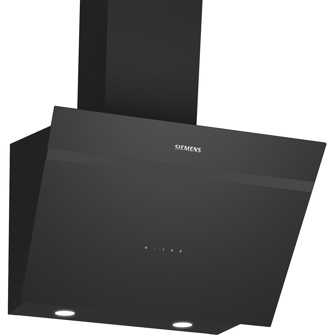 iQ300 Вытяжка для настенного монтажа Siemens LC66KPJ60T шириной 60 см с наклонным экраном: исключительный дизайн и высокая мощность для идеально чистого воздуха на Вашей кухне.