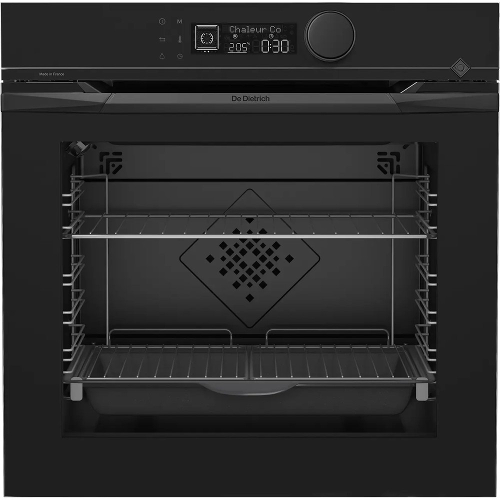С фирменной встраиваемой духовкой De Dietrich DOH4541B из коллекции Infinite Black Вам обеспечен комфорт и покой. Духовой шкаф отличается большой объемной внутренней камерой с шестью уровнями размещения противней и решеток для приготовления различных блюд и плавным закрыванием двери.