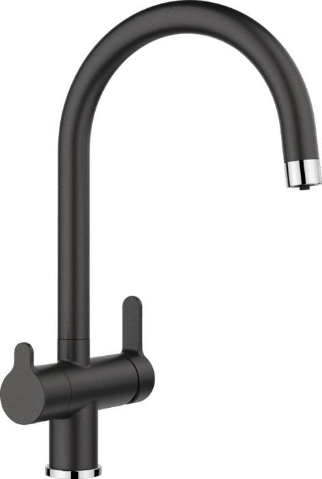 Blanco TRIMA (526214) антрацит — современный кухонный смеситель с функцией подключения фильтра. Особенностью данной модели является возможность подвода дополнительного шланга с питьевой фильтрованной водой. Для регулирования подачи фильтрованной и нефильтрованной воды служат два отдельных рычага. Подача воды осуществляется с помощью одного совмещенного излива с разделённым рассекателем, что экономит место за мойкой и является современным решением подачи питьевой воды.