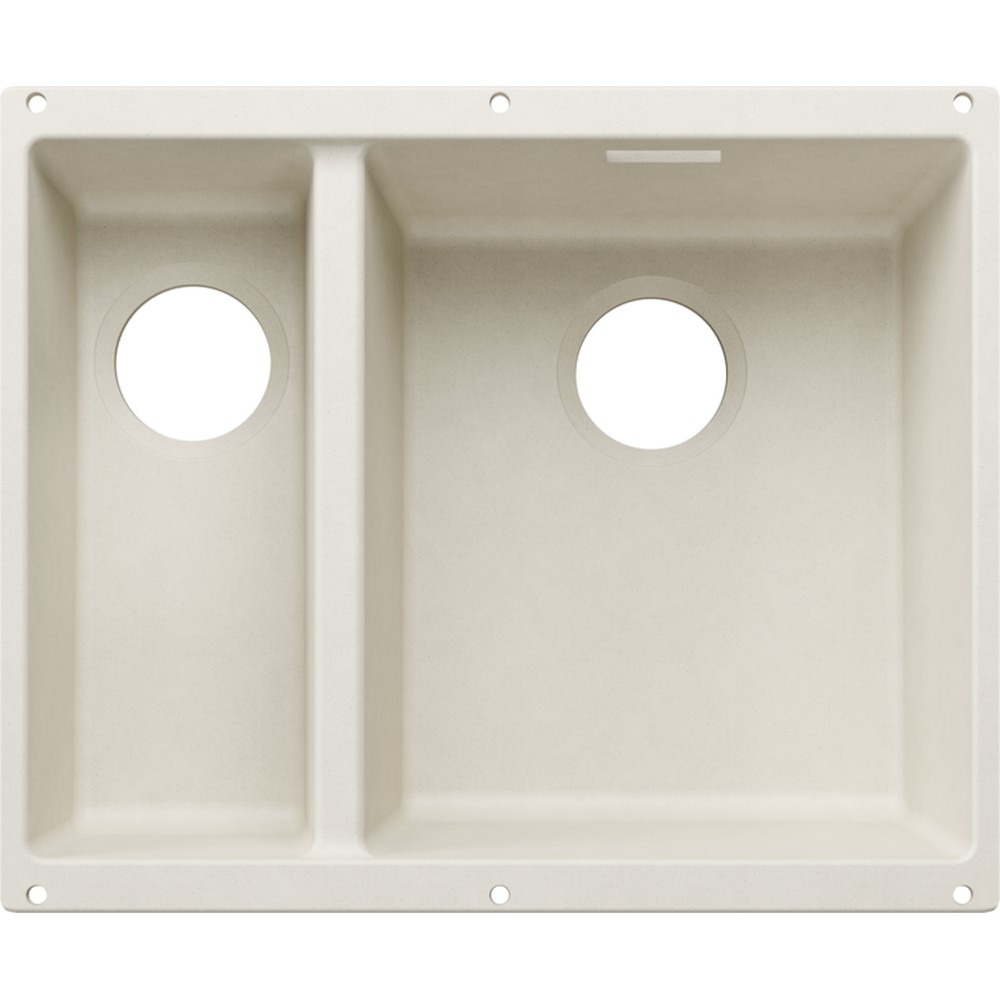 Мийка Blanco SUBLINE 340/160-U з основною чашею, розташованої праворуч, виконана із стійкого композитному матеріалу SILGRANIT. Призначена для індивідуального планування функціональної робочої зони. Оптимальне використання робочого простору досягається за рахунок максимальної місткості чаш, а також функціональних додаткових аксесуарів, які можна придбати окремо. Відвідна арматурою з корзинчатим вентилем також купується окремо.