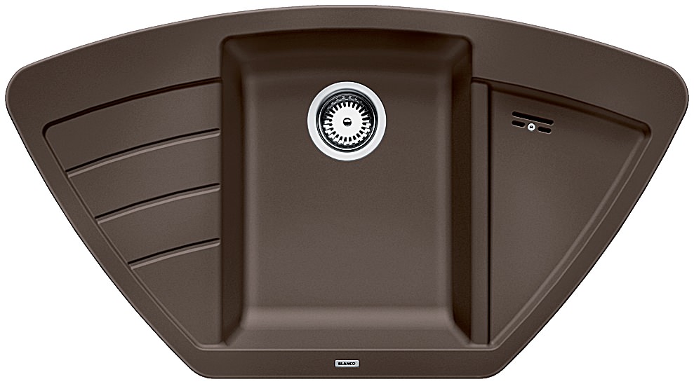Оригінальна мийка Blanco ZIA 9E (515074) колір кава поєднує в собі збалансованість і симетричність пропорцій. Відрізняючись компактністю та практичністю, вона може бути встановлена як у звичайну, так і кутову шафу, забезпечивши максимальний комфорт для процесу роботи. Містка чаша з маленьким радіусом закруглення знаходиться по центру. Зліва розташоване невелике практичне крило з виїмками, а правостороннє крило знаходиться в поглибленні та оснащено додатковим виливом для збільшення функціональності.